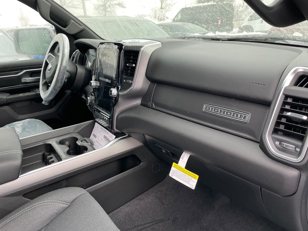 4x4, Back-Up Camera, iPod/MP3 Input, CD Player, Trailer Hitch, Remote Engine Start, Blind Spot Monitor, Lane Keeping Assist, Cross-Traffic Alert, Smart Device Integration. Privacy Glass, Keyless Entry, Child Safety Locks, Electronic Stability Control. Ram Big Horn with Bright White Clearcoat exterior and Black interior features a 8 Cylinder Engine with 395 HP at 5600 RPM*.